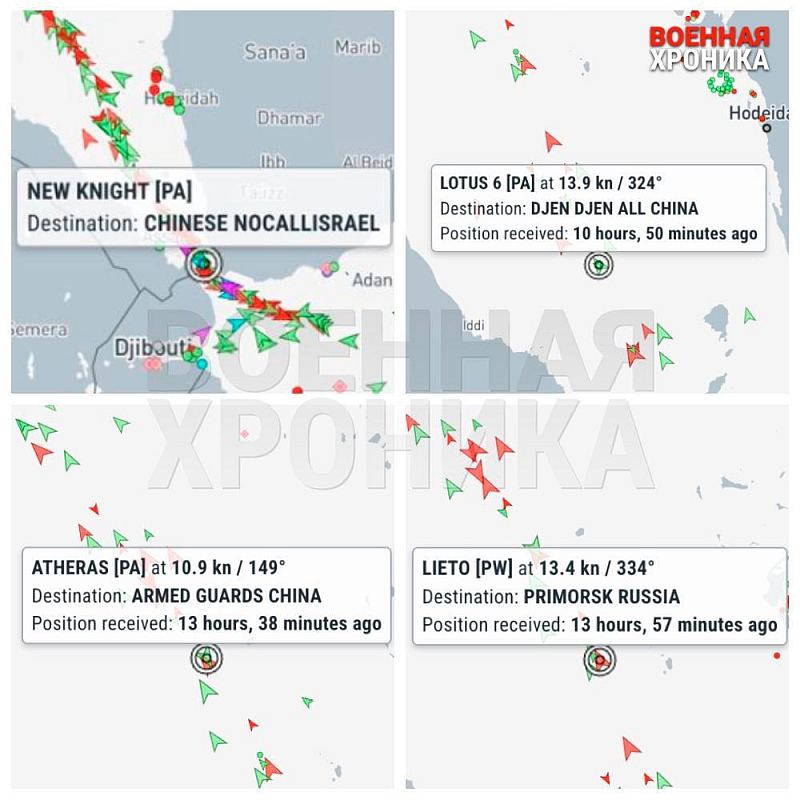 Значительная часть судовладельцев на фоне роста напряжённости у берегов Йемена открыто помечает свой флот в системе идентификации как «не имеющий связей с Изралем». При этом китайские и российские сухогрузы и танкеры ходят через Аденский залив и Красное море без проблем.