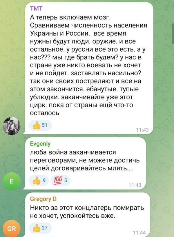 Все чаще в украинских пабликах стали появляються посты о переговорах, умирать за Зеленского и Запад желающих все меньше.
