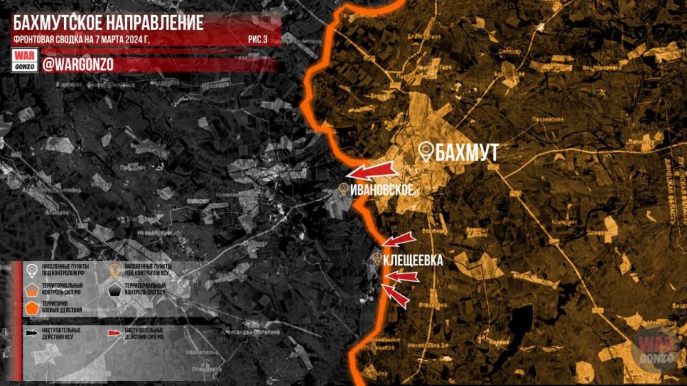 Фронтовая сводка на утро 07.03.2024 г. от Телеграм-канала WarGonzo.