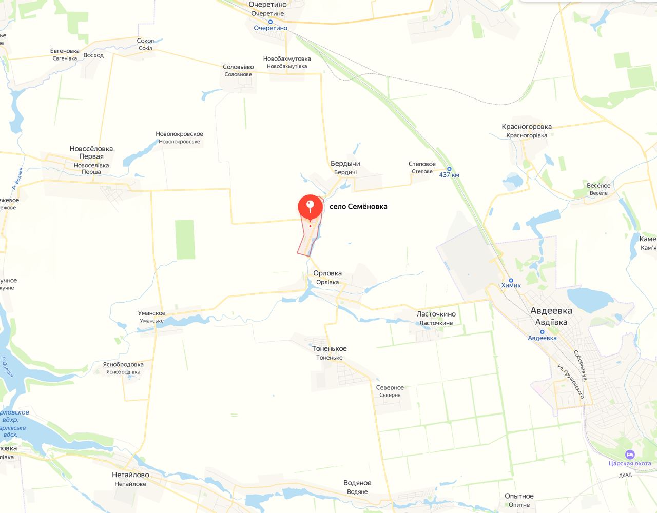 Со стороны населённого пункта ОРЛОВКА наши штурмовые группы пробились к населённому пункту СЕМЁНОВКА.