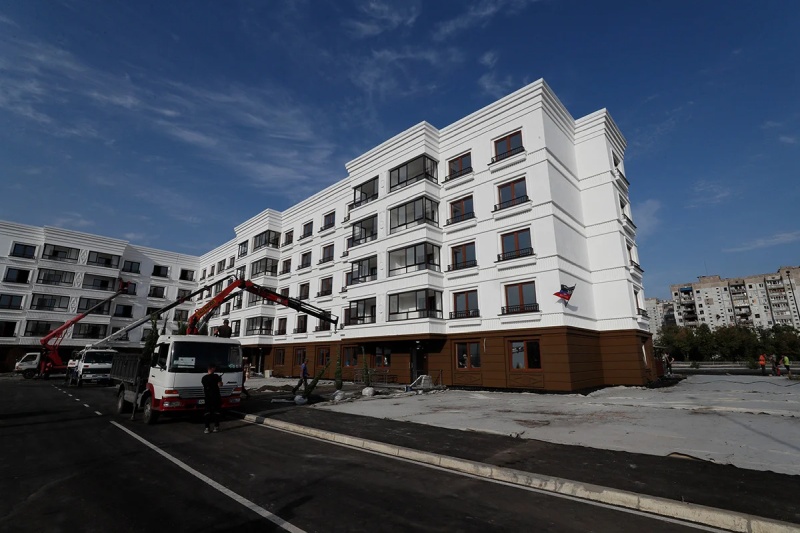 Жилой район Невский в Мариуполе, построенный Военно-строительным комплексом Министерства обороны России, 30 августа 2022 года. Фото: Юрий Кочетков / EPA-EFE