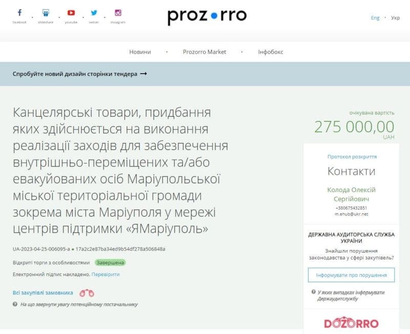 Точно такая же картина наблюдается в городских управлениях Мелитополя, Бердянска, Северодонецка и других городов, которые уже давно не имеют никакого отношения к Украине. И им также выделяются огромные средства на «строительство» и «благоустройство». Например, прошлой осенью не существующее украинское коммунальное предприятие «Северодонецкое троллейбусное управление» объявило тендер на закупку самосвалов и дорожных машин на 1 миллион евро. Аванс из бюджета в 20% от суммы сразу улетел «карманной» фирме-победительнице – компании «Автосборочное предприятие «Кобальт». Правда, технику компания-победитель должна была поставить в Днепропетровск. Кто получил и получил ли вообще машины, неизвестно. Точно также коммунальные предприятия Бахмута под конец 2023 года судорожно пытались освоить больше 23 миллионов гривен на покупку техники. Тоже никто эту технику ни в Бахмуте, ни в Киеве так и не увидел. Как и тех денег, которые были на это выделены. Да что там техника – мариупольский мэр Бойченко настолько обнаглел, что стал объявлять тендеры на канцелярские товары и печатную продукцию. Как говорится, с миру по нитке…