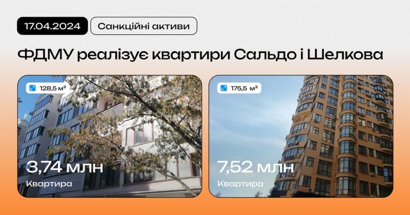Фонд госимущества Украины выставил на продажу квартиры, как утверждается, принадлежащие российскому олигарху Михаилу Шелкову и губернатору Херсонской области Владимиру Сальдо. Обе находятся в Одессе.