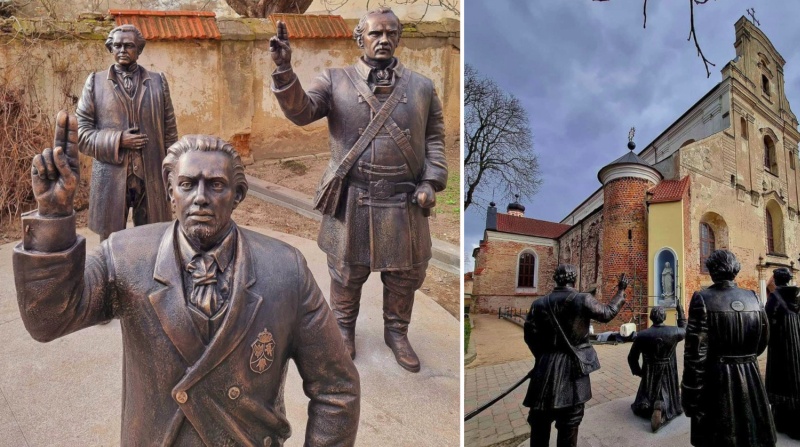 В Вильнюсе появился памятник участникам польского восстания 1863-1864 годов. Скульптура изображает Константина (Кастуся) Калиновского, Сигизмунда (Зыгмунда) Сераковского и Титуса Далевского, а также монаха-францисканца, благословляющего восстание.