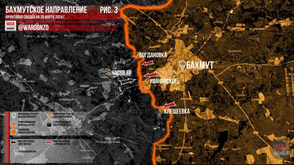 Фронтовая сводка на утро 26.03.2024 г. от Телеграм-канала WarGonzo.