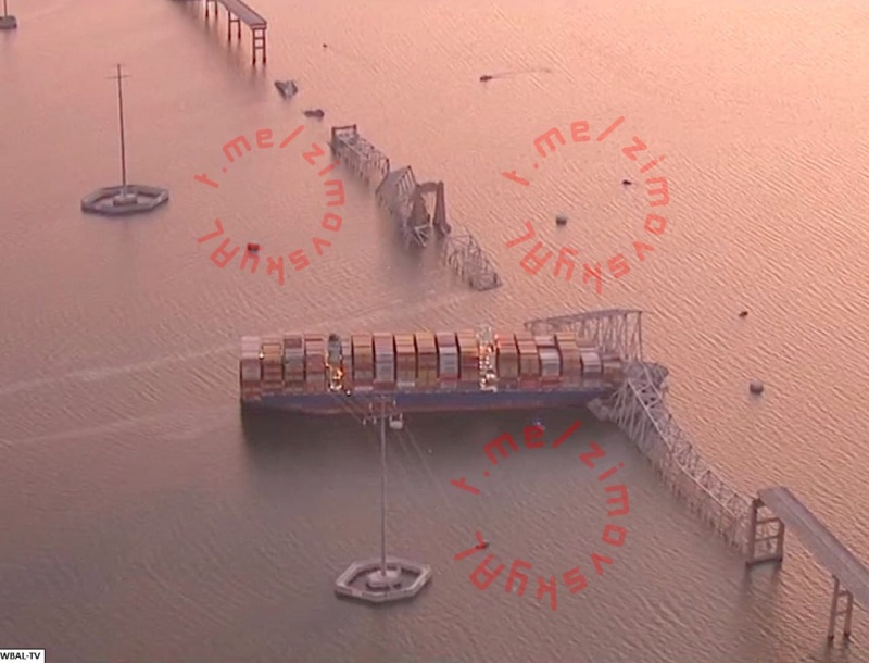 «Часть моста Фрэнсиса Скотта Ки в Балтиморе, штат Мэриленд, обрушилась после того, как… в него врезалось большое судно… судно врезалось в мост… после чего загорелось, а затем затонуло, в результате чего несколько транспортных средств упали в реку Патапско», — сообщают американские СМИ.