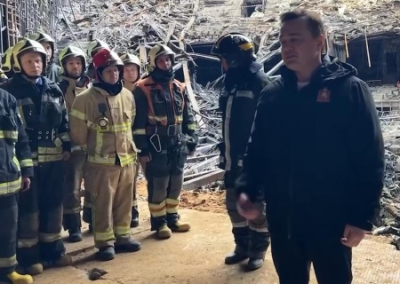«Мероприятия по спасению и поиску пострадавших завершены. Считаю, данный этап завершен. Сразу могу заявить, что пострадавших больше нет под завалами», — доложил главе Подмосковья спасатель.