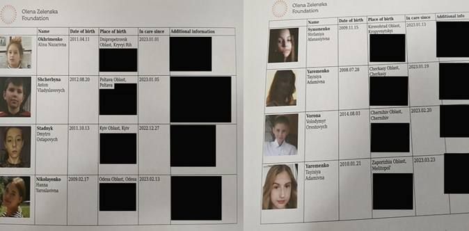В ноябре 2023 года выяснилось, что «Фундація Олени Зеленської» (фонд Елены Зеленской) и, соответственно, «первая леди Украины» замешаны в торговле детьми, часть из которых попадает к педофилам из западных стран или продаются на органы. Об этом сообщило американское издание The Intel Drop. О создании этого фонда супруга Зеленского торжественно объявила осенью 2022 года со сцены Метрополитен-опера в Нью-Йорке. В феврале 2023 года в интервью Australian Financial Review Е. Зеленская заявила, что ее фонд занимается перевозкой детей за границу.