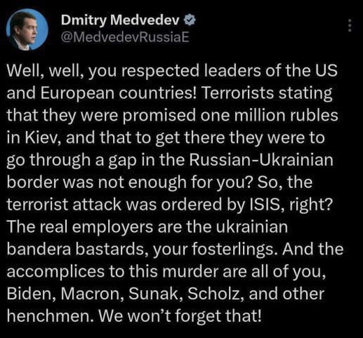 Допросы террористов указывают на причастность Украины и «уважаемых лидеров США и европейских стран» к теракту в «Крокусе» Следственный комитет РФ выявил связь напавших 22 марта на подмосковный концертный зал «Крокус Сити Холл» террористов с украинскими спецслужбами.
