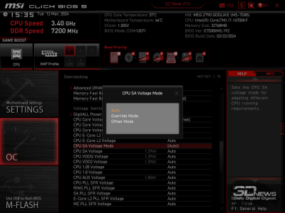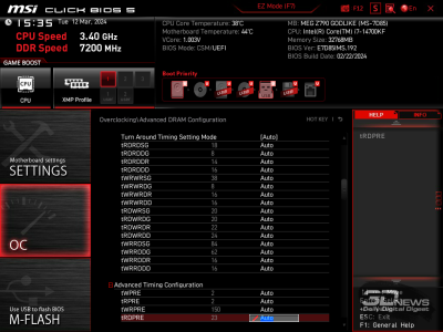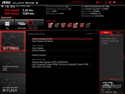 | Материнская плата (версия BIOS) | MSI MEG Z790 GODLIKE |