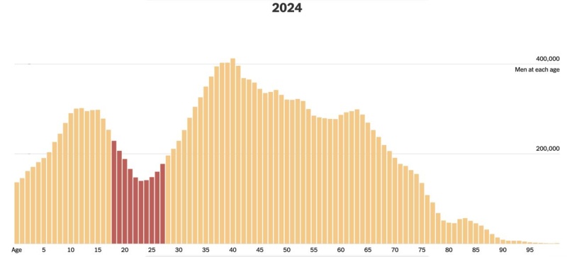 Однако здесь проблема, на Украине очень мало молодых мужчин, поэтому их мобилизация угрожает «вычеркнуть из жизни целое поколение».