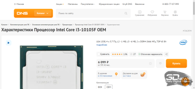 | Intel Core i3-10100F (Core i3-10105F), LGA1200, 4 ядра и 8 потоков, 3,6 (4,3) ГГц, 6 Мбайт L3 | от 8 000 руб. | от 6 300 руб. | от 5 300 руб. | от 5 100 руб. | 3 700-9 000 руб. |