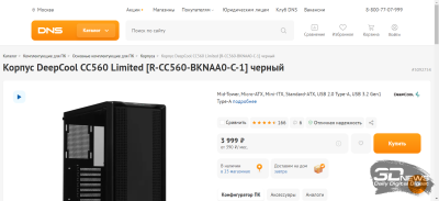 | Корпус | Ginzzu B170, midi-Tower | 1 200 руб. | DEXP DC-202M | 1 400 руб. | DeepCool CC560 Limited | 4 000 руб. |