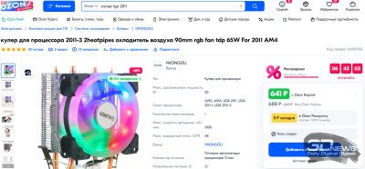 | Процессорный кулер | Башенный кулер для платформы AM4 | 900 руб. | DEEPCOOL Alta 9 | 700 руб. | ID-COOLING SE-903-SD | 1 500 руб. |
