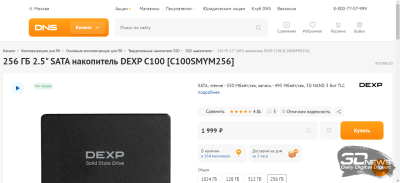 Что ж, после покупки набора с Intel Xeon и видеокарты остается на сдачу заказать SSD, кулер, корпус и блок питания. В большинстве случаев на этом железе особо не сэкономишь. Исключением являются разве что твердотельные накопители, хотя и тут много не наэкономишь. Так, за 2,5-3 тысячи рублей на OZON Global мы можем заказать SSD с интерфейсом SATA 6 Гбит/с объемом 480-512 Гбайт. А можем пойти в ближайший DNS и купить модель DEXP C100 C100SMYM512 за 3 499 рублей. И здесь не стоит вопрос быстродействия того или иного накопителя. Разбираться надо со своей внутренней «жабой» — особенно если случай окажется гарантийным.