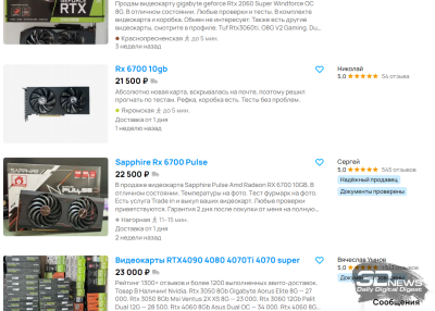| Radeon RX 580 8 Гбайт (в том числе 2048 SP) | от 6 000 руб. | Не было в продаже | Не было в продаже | от 5 000 руб. | 3 500-10 000 руб. |