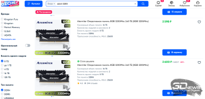| Оперативная память | Atermiter, 16 Гбайт DDR4-3200 | 2 600* руб. | GeIL Orion GOG416GB2666C19DC, 16 Гбайт DDR4-2666 | 3 600 руб. | Kigston KF432C16BBK2/32, 32 Гбайт DDR4-3200 | 5 100 руб. |