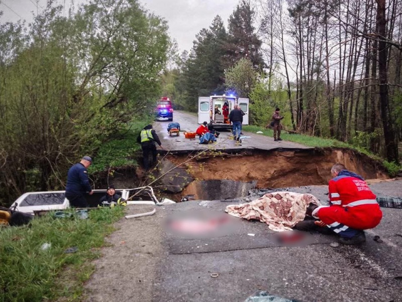 Сегодня утром в Киевской области возле села Олива на трассе Иванков-Радомышль дорога обрушилась и под землю провалился микроавтобус с людьми. В салоне было 9 пассажиров: два человека погибли, семь находятся в тяжелом состоянии. Микроавтобус вез людей на работу.