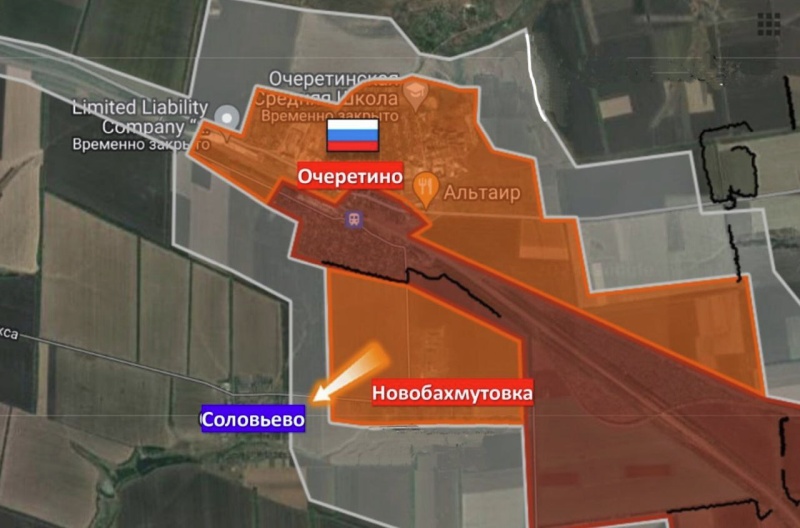 Военные телеграм-каналы сообщают, что при поддержке артиллерии и авиации 2-я армия группировки войск «Центр» вошла в Соловьёво и приступила к штурму села, в которое бежали потрепанные части ВСУ из Новобахмутовки.