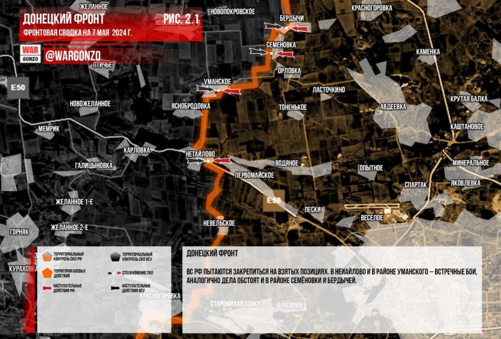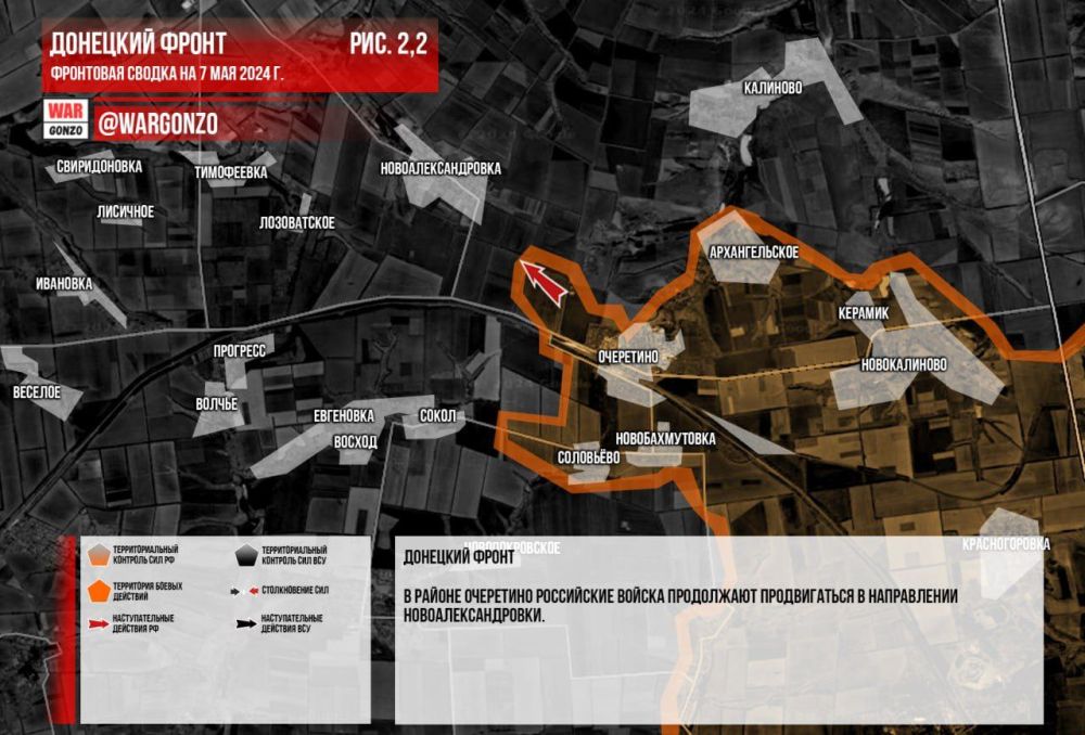 Фронтовая сводка на утро 07.05.2024 г. от Телеграм-канала WarGonzo.
