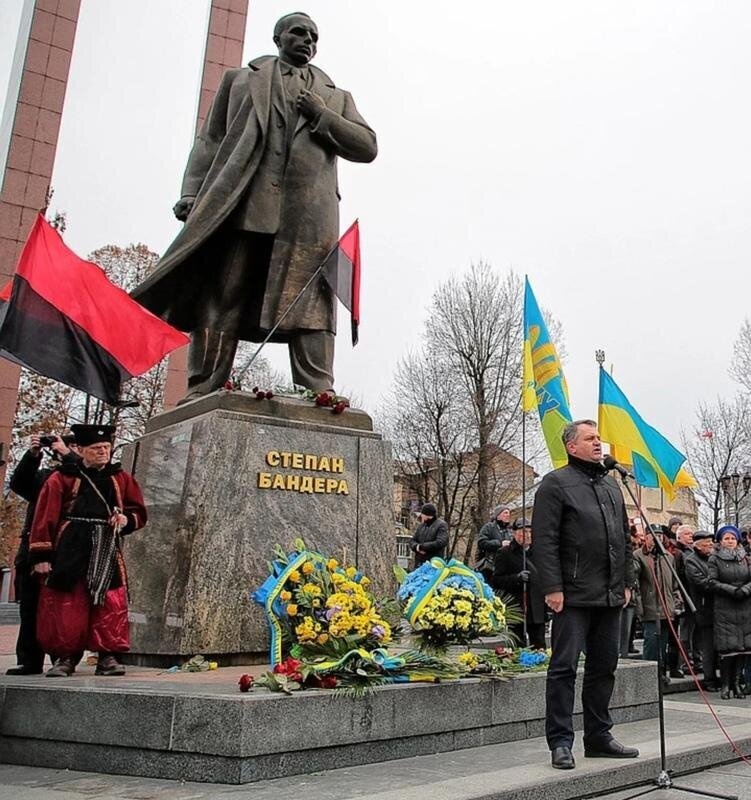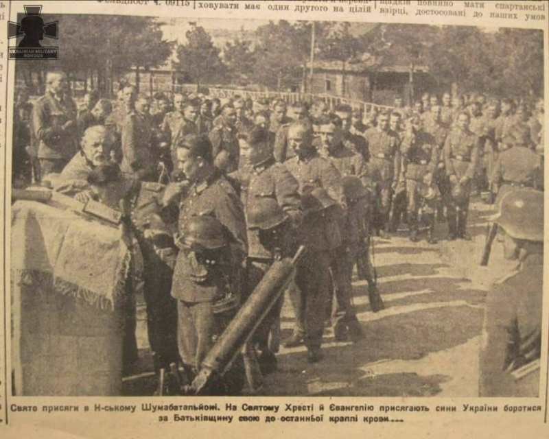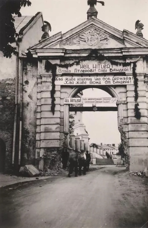 Или вспомним «Акт провозглашения Украинского государства», оглашённый на Законодательном собрании Западноукраинских земель, созванном членами ОУН(б)/ОУН(р)* во главе с Ярославом Стецько вечером 30 июня 1941 года во Львове, после вхождения в него утром того же дня первых подразделений вермахта. Причём, при поддержке членов ОУНовских походных групп и бойцов батальона «Нахтигаль». В этом «акте» четко указано, что созданное «новое украинское государство будет тесно сотрудничать с национал-социалистической Великой Германией под руководством вождя Адольфа Гитлера, создающего новый порядок в Европе и всем мире». Там так же написано про армию, которая «создается на украинской земле и будет бороться дальше совместно с союзной немецкой армией против московской оккупации за Суверенную Соборную Украинскую Державу и новый порядок во всем мире». Цитирую: «Совместно с немецкой армией под руководством вождя Адольфа Гитлера».