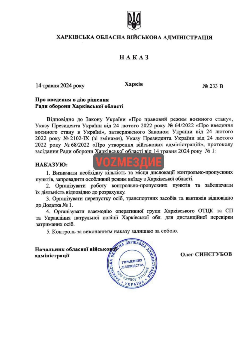 В Харькове и на всех основных дорогах в регионе развёрнуты мобильные блокпосты, усиленные бронетехникой и вооруженными сотрудниками СБУ. На них не дают эвакуироваться мужчинам, их сразу задерживают и передают в ТЦК.