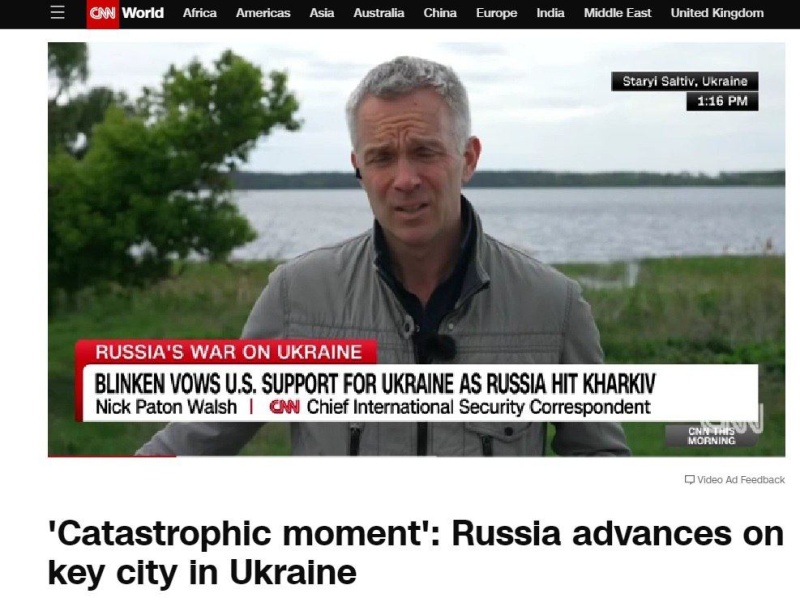 Корреспондент Ник Пэйтон Уолш в эфире американского телеканала CNN сообщил, что продвижение войск России на северо-востоке Украины является переломным моментом в ходе специальной военной операции на Украине, которой может не помочь военная поддержка Запада.