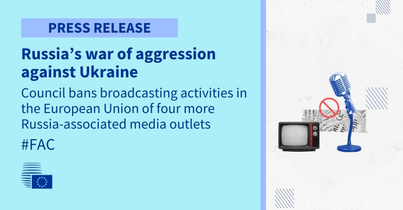 Совет Европейского союза опубликовал заявление, в котором говорится, что Евросоюз запретил на своей территории вещание РИА Новости, «Известий», «Российской газеты» и Voice of Europe.