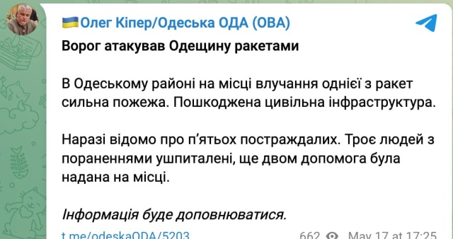 Местные ресурсы сообщают, что прилеты были и в Черноморском и Южном Одесской области.