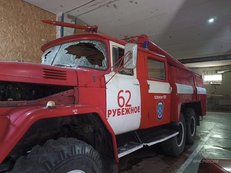 Днем ВСУ обстреляли Рубежное, в результате чего повреждена пожарная часть – здание и автоцистерна.