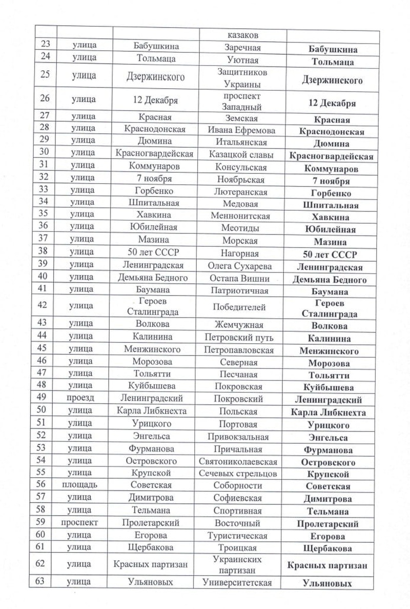 В Бердянске официально переименовали все улицы, которые были переименованы после госпереворота в Киеве в 2014 году в рамках декоммунизации. Как и в ДНР и ЛНР, улицам и переулкам вернули прежние названия.