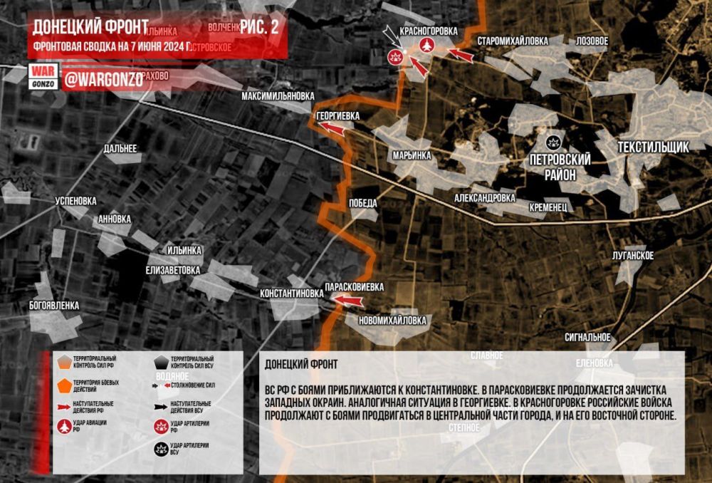 Фронтовая сводка на утро 07.06.2024 г. от Телеграм-канала WarGonzo.