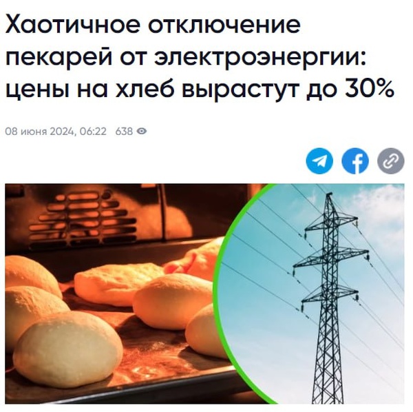Как заявляет президент "Всеукраинской ассоциации пекарей" и по совместительству директор ООО "Киев Хлеб" Юрий Дученко, в течении месяца цены на хлеб на Украине вырастут на 30%. По его словам, рост связан с дефицитом рабочей силы и нехваткой электроэнергии: большинство предприятий хлебной отрасли имеют статус объектов критической инфраструктуры и не должны отключаться от электросети, но по факту их отключают.