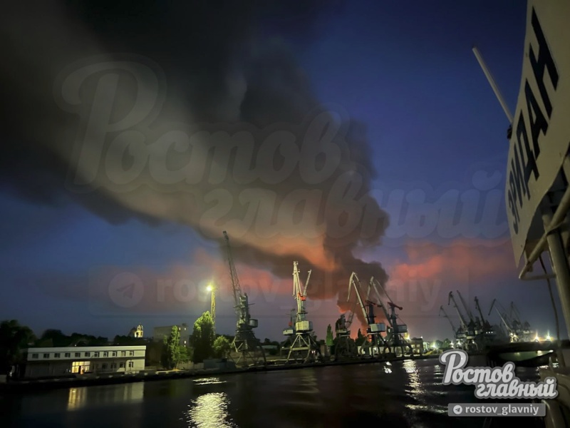 Минувшей ночью ВСУ совершили террористическую атаку при помощи БПЛА по нефтебазе в городе Азове Ростовской области. По данным МЧС, горит резервуар с нефтепродуктами объемом 5 тысяч кубических метров. Площадь возгорания — 5000 квадратов.