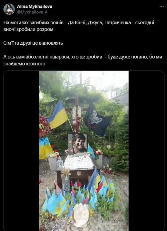 В Киеве разгромили могилы погибших боевиков Да Винчи, Джуса и Петриченко