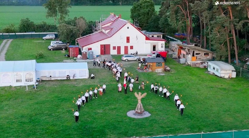 «В прошлом здесь располагались палаточные лагеря основанной в 1990 году организации «Верная Родине немецкая молодежь», где детям и молодежи прививали бесчеловечную нацистскую идеологию. Территория отгорожена от внешнего мира высокими заборами. Однако журналистам медиа-коллектива Research Nord удалось заснять происходящее во дворе с подъемной платформы», — говорится в публикации.