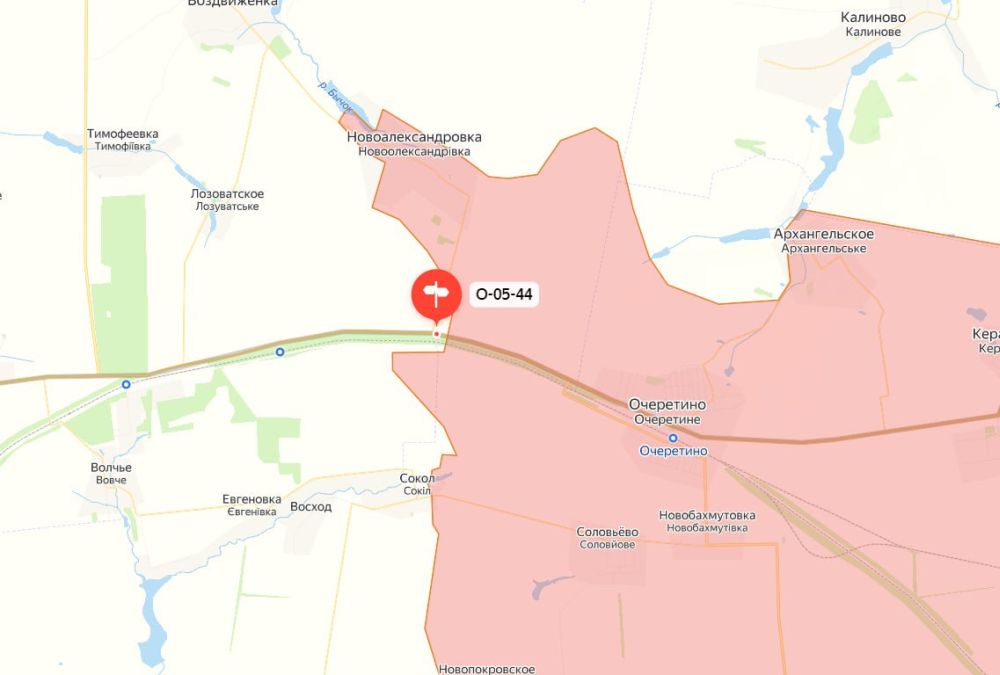 На снимке с дрона можно заметить указатель поворота на соседнюю Новоалександровку, также контролируемую российскими подразделениями.