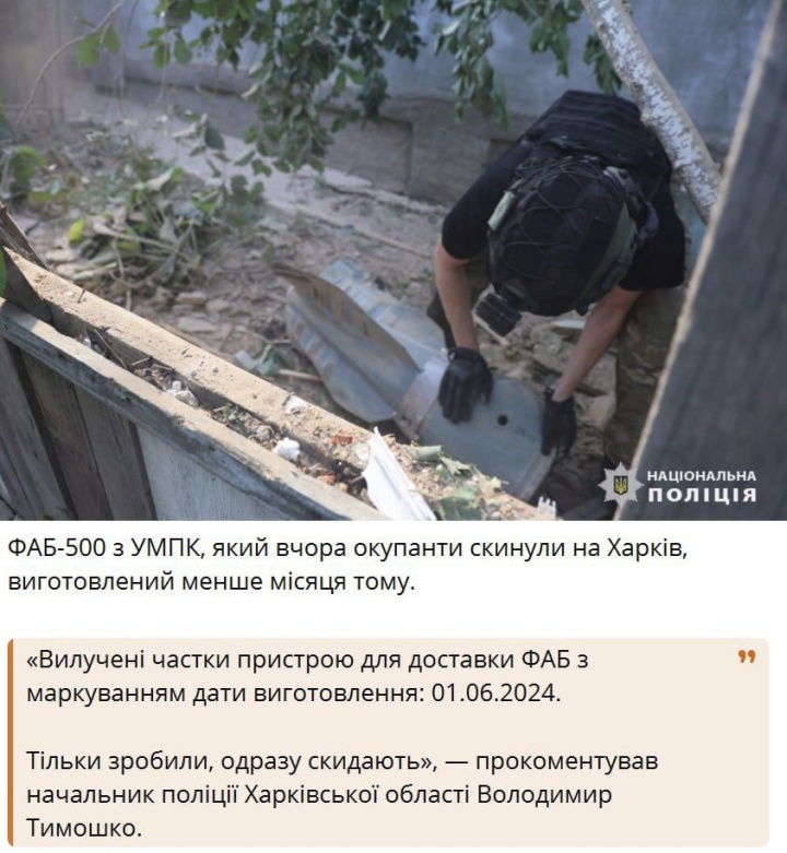 «Она вдвое мощнее КАБ- и ФАБ-250, которые использовали раньше, которыми ежедневно бомбят Харьков», — заявил руководитель Харьковской облпрокуратуры Александр Фильчаков.