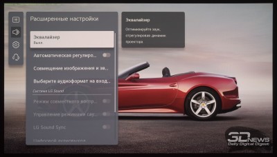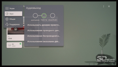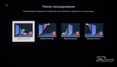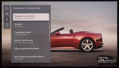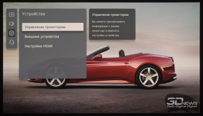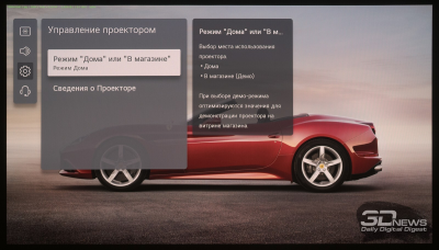При выводе HDR-контента (вне зависимости от формата: HDR10, HLG) лазерный проектор LG переходит в соответствующий режим работы, а доступные для него пресеты приобретают приставку HDR в названии, но сильно на их настройках это не сказывается.