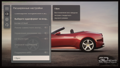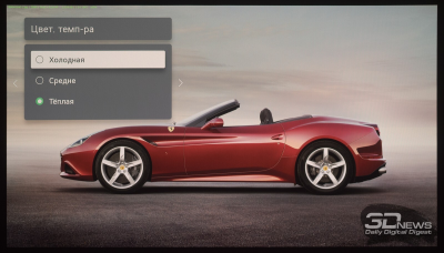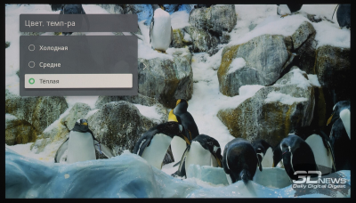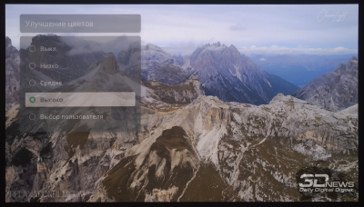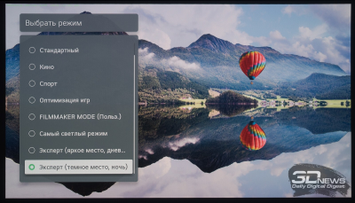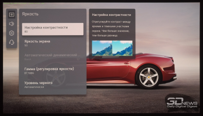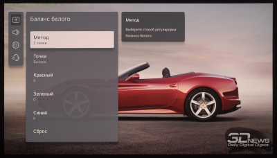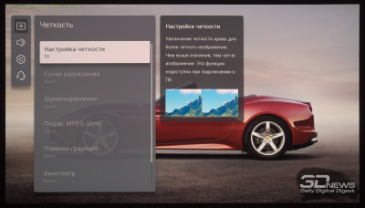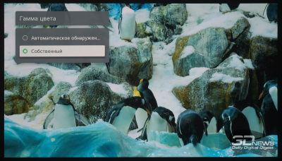 Здесь же, благодаря функции экспертной настройки (режимы «Эксперт-светло» и «Эксперт-темно»), можно провести глубокую и тонкую настройку цветопередачи и качества картинки. Доступны стандартные регулировки контрастности, яркости, чёткости, цветности (насыщенности), оттенка, цветовой температуры (по 2 или 10 точкам), динамической контрастности и многое другое. Можно изменить цветовую гамму, активировать цветовой фильтр, выбрать один из двух типов шумоподавления, отрегулировать уровень чёрного и включить технологию TruMotion. Часть настроек может быть заблокирована при использовании подключения к ПК – следует это учитывать.