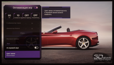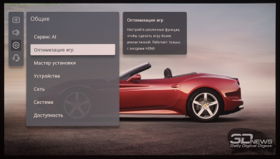 Несмотря на ограничение частоты вертикальной развёртки значением 60 Гц, у CineBeam Q HU710PB есть чем порадовать и любителей игр — проектор предлагает автоматический режим с низкой задержкой вывода сигнала (ALLM). При подключении внешней игровой приставки к проектору LG через порт HDMI автоматически включается игровой режим, снижающий так называемый инпут-лаг и контролирующий остальные важные параметры.