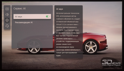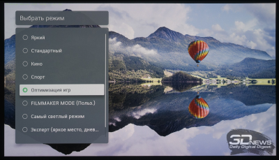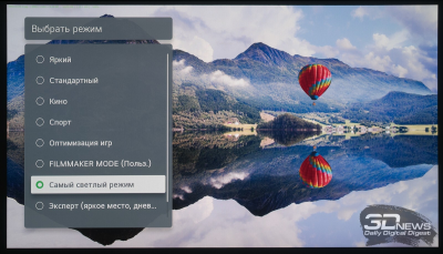 В наличии и режим FILMMAKER, позволяющий максимально приблизить получаемое изображение к тому, что задумывал режиссёр фильма, без электронных приукрашиваний. Режим особенный, поэтому производитель оставляет пользователю только возможность регулировки яркости источника лазерного света, а все остальные параметры блокируются. Кроме того, есть два экспертных режима для полноценной ручной настройки и пресет «Самый светлый», в котором достигаются максимальная яркость и цветовая насыщенность, – именно в нём от новинки LG можно попробовать добиться заявленного значения цветового охвата.