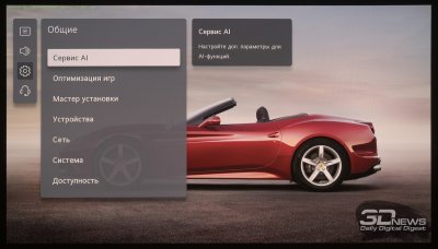 В третьем разделе, «Общие», представлены подразделы с настройками AI-сервисов, оптимизации игр, настройка положения картинки проектора (регулировка все тех же трапецеидальных искажений и прочее), сетевые настройки. Здесь же можно произвести беспроводное соединение с различными устройствами.