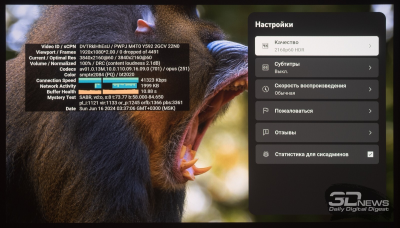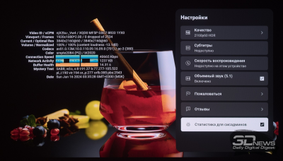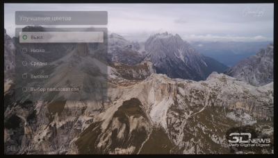 Есть функция вставки промежуточных кадров – знакомая технология MEMC, представленная в проекторе CineBeam Q под названием TruMotion – как и в части телевизоров бренда. Ее качество очень хорошее. В большинстве случаев промежуточные кадры рассчитываются правильно, с небольшим количеством малозаметных артефактов и с высокой четкостью. Пользователь может настроить работу этой функции под свои требования или отключить ее совсем для просмотра кино в классическом представлении – 24 кадра в секунду.
