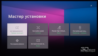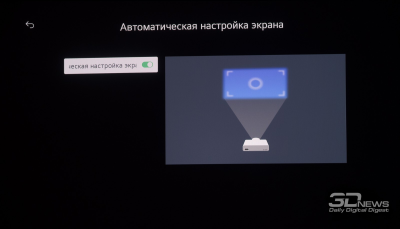 При каждом включении, сдвиге проектора в пространстве или изменении положения проекционного экрана герой обзора самостоятельно проводит все необходимые коррекции: фокусировку, программное зумирование и сдвиг изображения в пространстве, трапецеидальную коррекцию. Но это всё происходит исключительно при активированной системе автоматической настройки.
