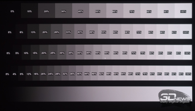 Режим «Оптимизация игр» отличается холодной картинкой, отличными настройками гаммы, высокой стабильностью ЦТ оттенков серого и яркостью на уровне заводских настроек – 73 нита в нижней точке проекции. Коэффициент контрастности 1825:1.