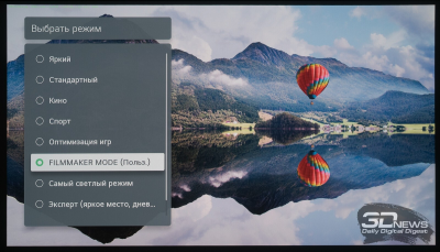 Ранее мы уже выявили самые актуальные пресеты. Поклонники более мягкой, «ламповой» картинки могут перейти в протестированный нами и настоятельно предлагаемый производителем режим FILMMAKER. Он является прекрасным выбором для тех, кто не хочет заниматься дополнительной настройкой и рассчитывает на изначально высокую точность цветопередачи без ручных регулировок.