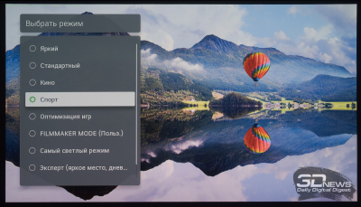 Между тем мы настоятельно рекомендуем воздержаться от использования режима «Спорт» (потеряны многие детали, картинка очень резкая), а в случае использования режима «Самый светлый» следует рассчитывать исключительно на демонстрацию всех возможностей проектора, но без акцента на точности цветопередачи.