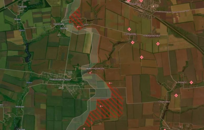 Работающий на ГУР аналитический ресурс DS заявил о фактической потере Сокола, поместив его на своих картах в российскую зону контроля. Также они пишут о заходе наших войск в Евгеновку с востока и заметном продвижении ВС РФ к Новосёловке Первой.