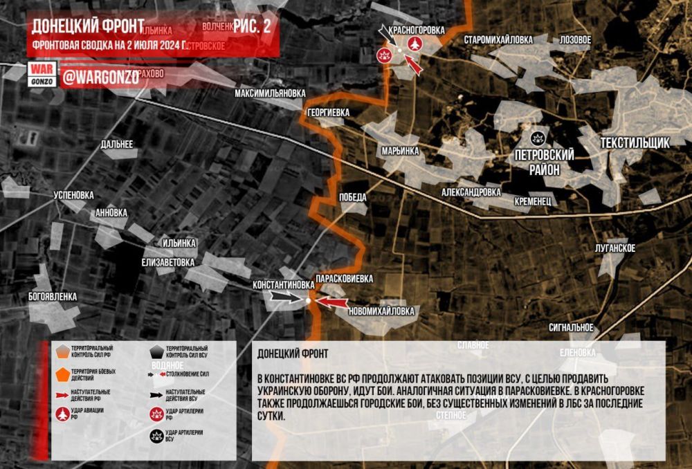 Фронтовая сводка на утро 02.07.2024 г. от Телеграм-канала WarGonzo.
